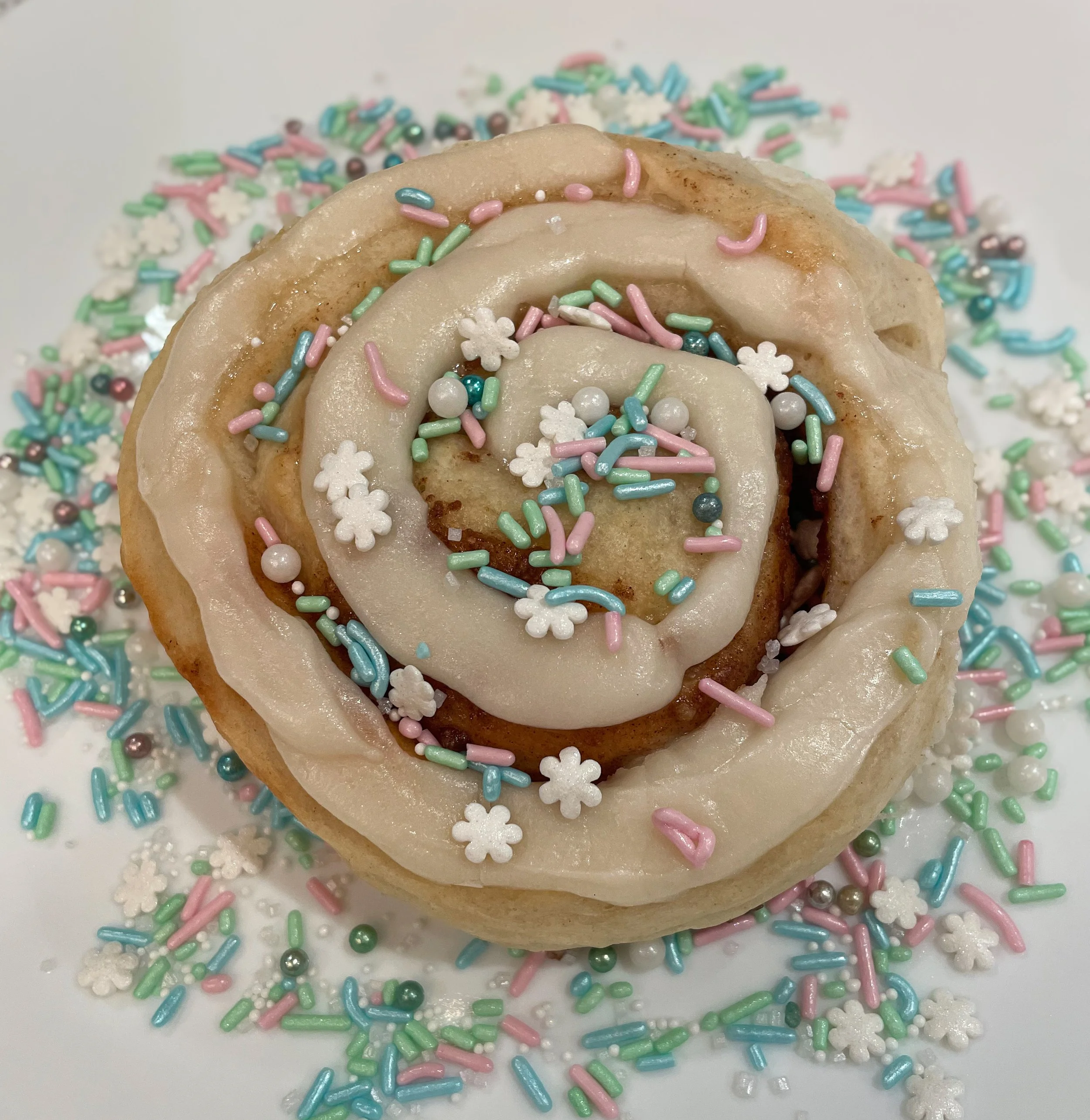Here, you’ll find themed cinnamon rolls, complete with fun, seasonal sprinkles and toppings that turn a simple breakfast treat into a joyful experience. Whether it’s a holiday morning, a birthday surprise, or just a “because we can” kind of day, these cinnamon rolls are made to bring people together and bring that cozy feeling into your home!